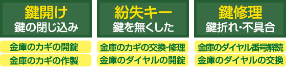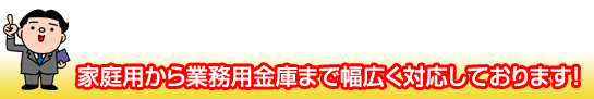 一般家庭で重要書類の保管場所と言えば家庭用金庫です。その家庭用よりサイズも大きく防犯性が高いのが業務用金庫です。事務所や会社オフィスで多く使われており、防犯性と併せて耐火性もある金庫です。その為、非常に強固で頑丈な作りです。 そんな金庫のトラブルはお任せください! 迅速に解決致します!