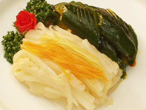 * 香腸/腸詰め 557 円 * 皮蛋豆腐/ピータンドウフ 630 円 * 辣白菜/白菜の辛子甘酢漬け 525 円 * 辣黄菜/胡瓜の辛子漬け 525 円 * 酸辣双味/二種漬物盛り合わせ 630 円 * ザーサイ 367 円 |