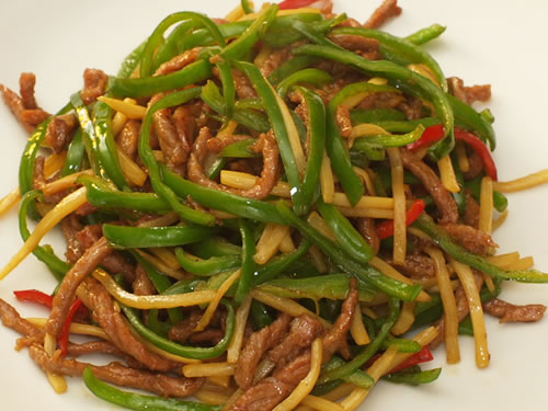 * 青椒牛肉絲/牛肉とピーマンの細切り炒め 1,680 円 * 双冬牛肉絲/牛肉と筍椎茸の細切り炒め 1,680 円 |