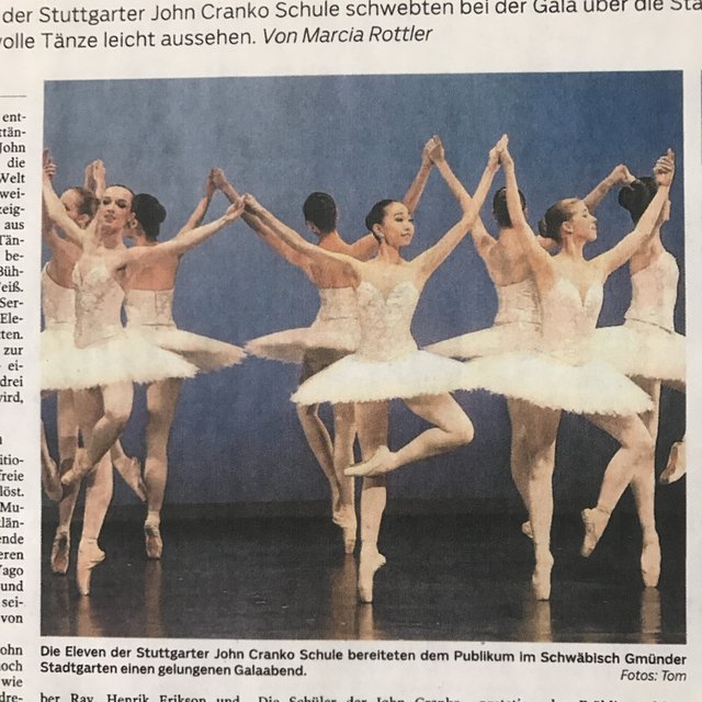 これからの活躍が大いに期待されます。 皆様も応援を宜しくお願い致します。 ドイツのジョン・クランコに留学している松永千里が、スクールのパフォーマンスで新聞に載りました。