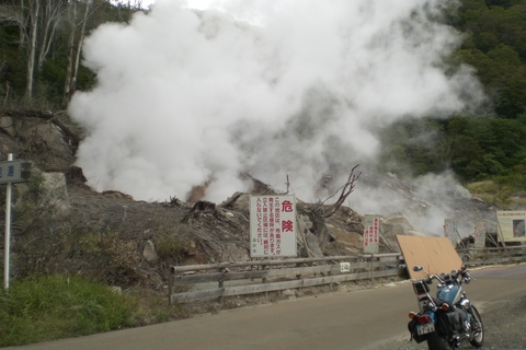 写真は小安峡温泉から秋の宮に抜ける途中にある川原毛地獄で異様なにおいが立ち込めていました