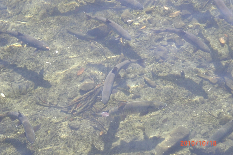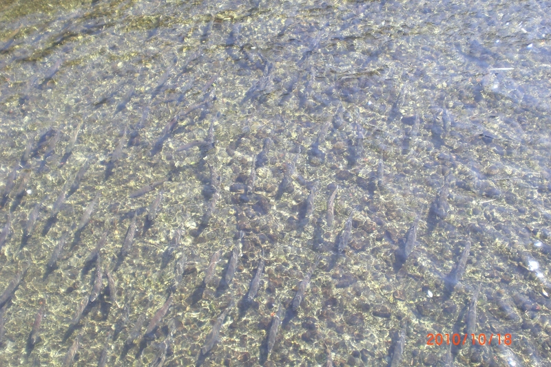 釜石の手前 唐丹町で毎年見られる鮭の遡上、国道45号線の真下での写真です