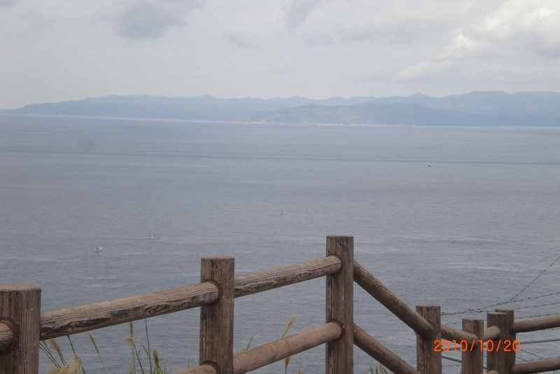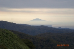 津軽半島、小泊の山頂から雲に浮かぶ岩木山と海岸線