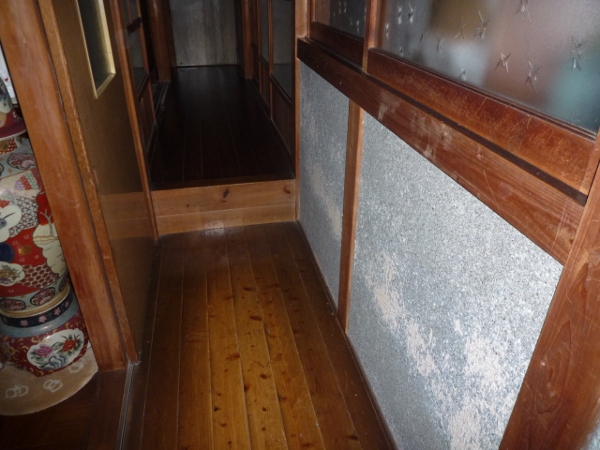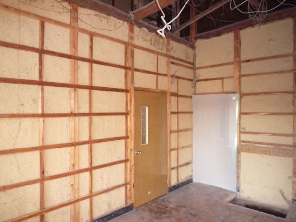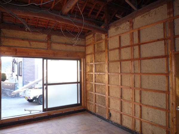 昔の下部屋の間仕切りが出てきました。この部分に引戸を付ける予定です。 築30数年の応接間を改装 2011/01/24