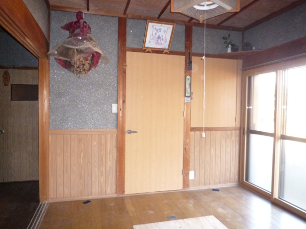 壁は付き板合板貼、床もフロアーは補強が必要ですが・・・ とにかく明るいリビングに改装します。 |