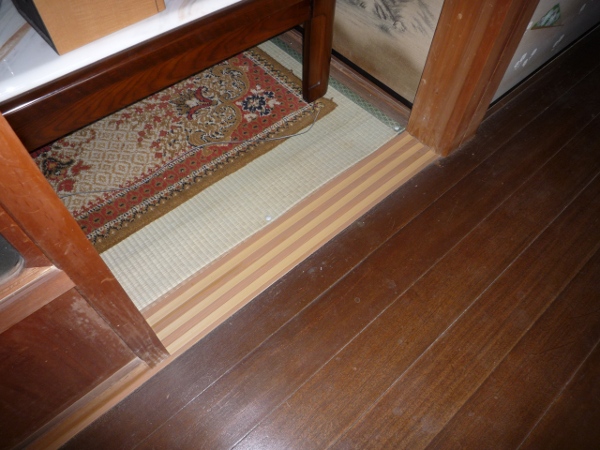座敷と中廊下の間仕切りの敷居です。 3本建具の普段は開けない建具の下、家具の移動の時開けてびっくり、白蟻に喰われ悲惨な状況です。 畳や縁板は大丈夫でした。座敷の床下の大引・束材・床板等も確認しました。 白い敷居は着色して色あわせし、目立たなくします。 解体工事完了 2011/01/24