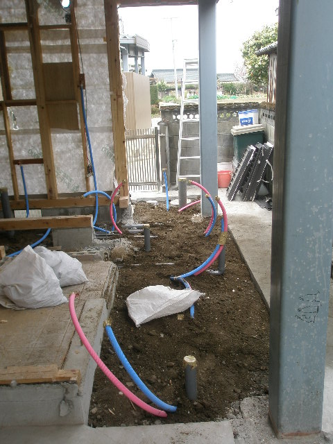住宅エコポイントが適用されますので壁断熱で10万ポイントもらえます。 写真掲載が少なくて申し訳ないのですが、断熱工事をするまえに母屋と取り合い部分は下屋根を設け、 雨対策をしました。板金屋さんが寝転んで工事するのがやっとのスペースでした。 屋根だけでなく母屋の樋もSUS製の箱樋に変更しました。これでバッチリです。 今回床組はフリーフロアーを採用しました。元が車庫という事もあり、床下の高さが確保出来ません。 こんな時には非常に便利です。フリーフロアーの上にコンパネ下地をし桧の無垢板をはりました。 又養生をメクリしだいお見せします 工事着工 2010/05/25