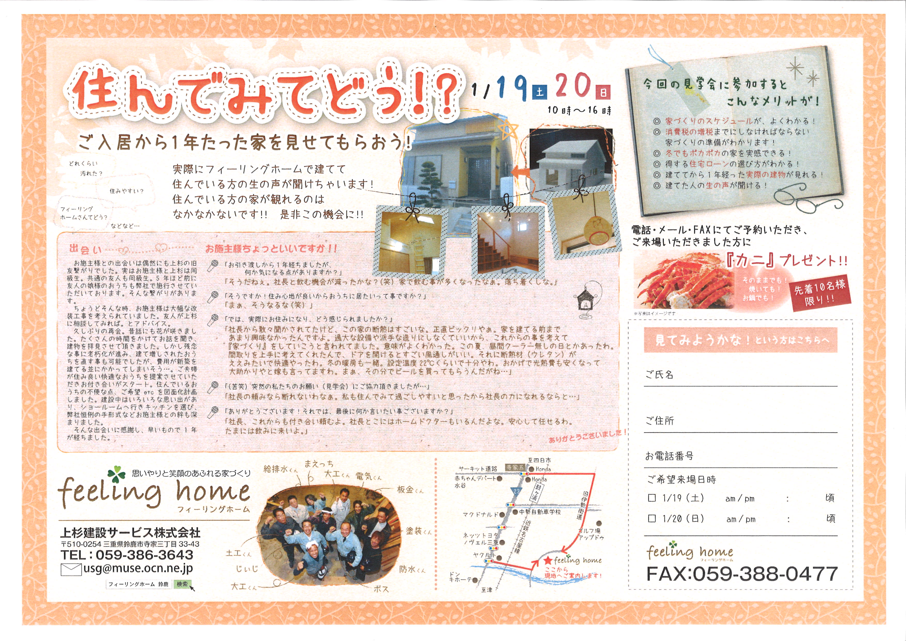 feeling homeの見学会は、これから実際に人がお住まいになる建物ですので、「ナマの家」を見る事ができ、これから家づくりを始められる方の参考になります。 |