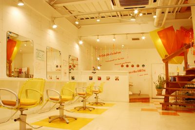 | ヘアートリップは1Fと2Fで、雰囲気を変えてお席をご用意しております。 こちらは1F、賑やかなスペースです。 |